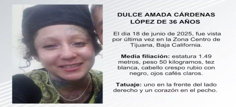 De acuerdo al reporte de búsqueda, el 18 de junio de 2025, aproximadamente a las 13:15 horas, fue vista por última vez en la Zona Centro de Tijuana, Baja California, y desde entonces se desconoce su paradero.