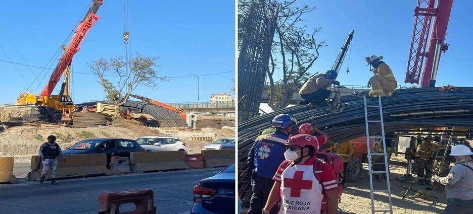 Dos trabajadores fueron rescatados por elementos del cuerpo de Bomberos de Tijuana, luego de quedar atrapados tras un accidente en la construcción de una torre para el viaducto elevado, ubicada sobre la avenida Internacional, en la Zona Centro de la ciudad.